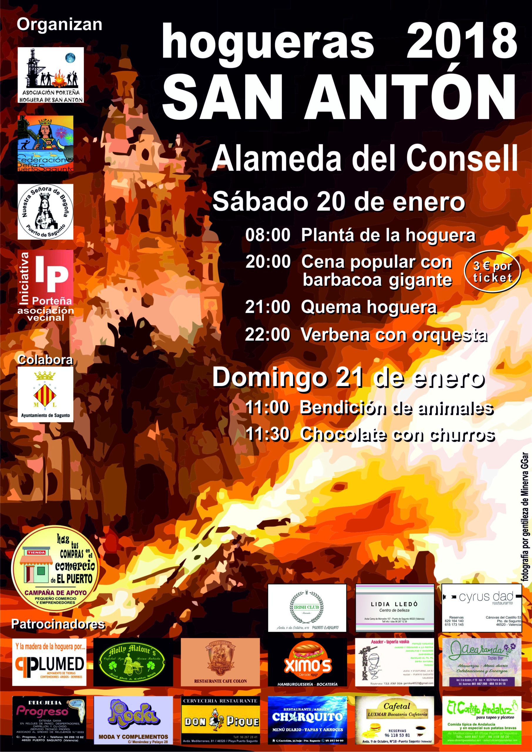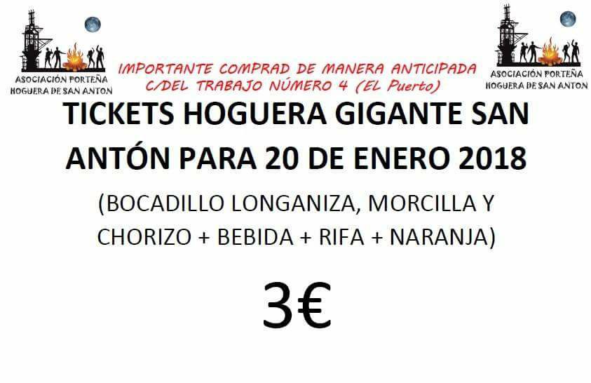Desde la Asociación Porteña Hogueras de San Anton os anunciamos la llegada de la Hoguera Gigante que tendrá lugar el día 20 de Enero de 2018 en las inmediaciones de la plaza la Alameda.